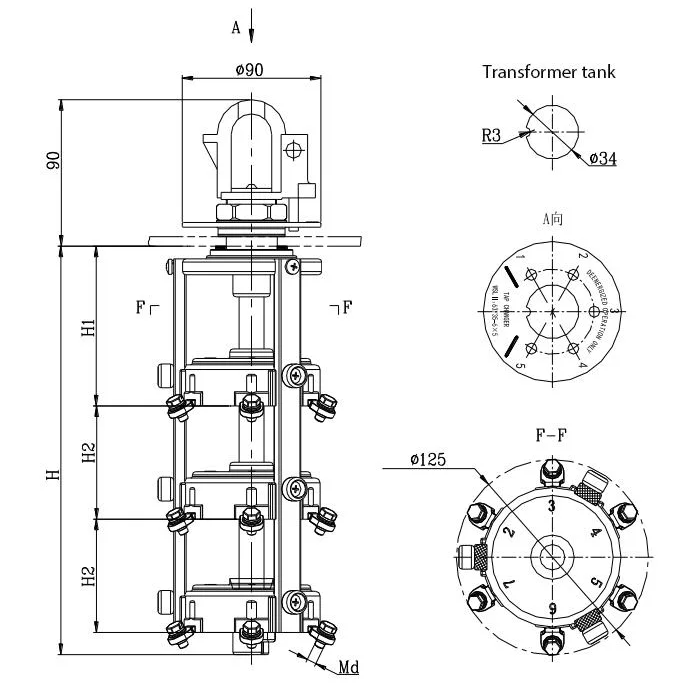 7) Before assembling and switching should make 3~5 times of transfer on the tapping position of the tapping switch, when the tapping has completed the regulating transfer, the transfer handle must be put into the flange locating slot.